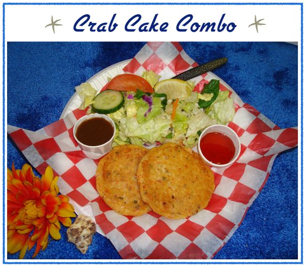 2 home made crab cakes made with snow crab, peppers, onion, eggs and seasonings.